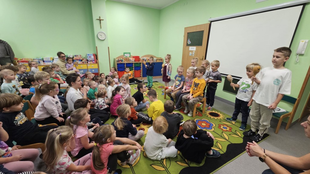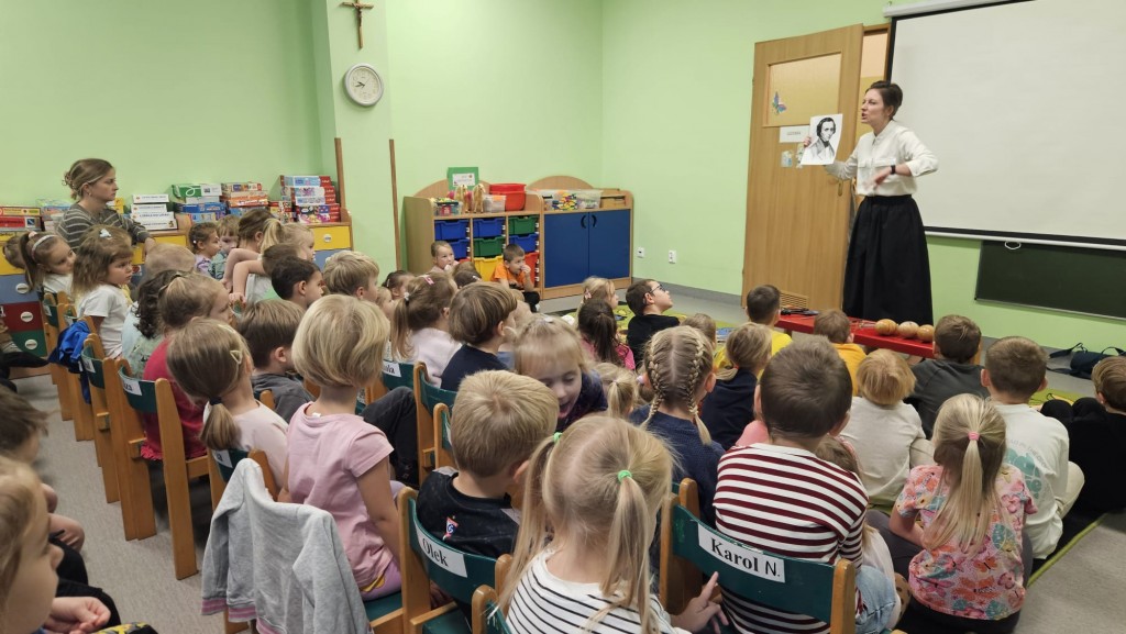 29 października spotkaliśmy się by wpólnie przeżyć koncert finałowy zwycięzcy XIX Konkursu Chopinowskiego. Poznaliśmy Fryderyka Chopina, zobaczyliśmy jak wygląda orkiestra symfoniczna a przez to doświadczyliśmy namiastki sali koncertowej. Lecz zanim to nastąpiło sami stworzyliśmy małą orkiestrę. Jak się okazało nawet muzyka Chopina, która przyniosła nam inspirację na stworzenie własnej instrumentacji, świetnie wpisała się w repertuar przedszkolny.