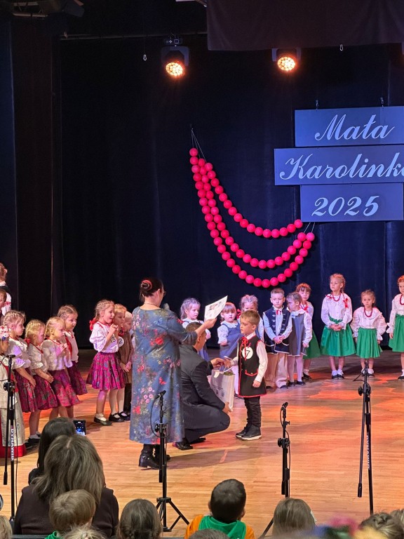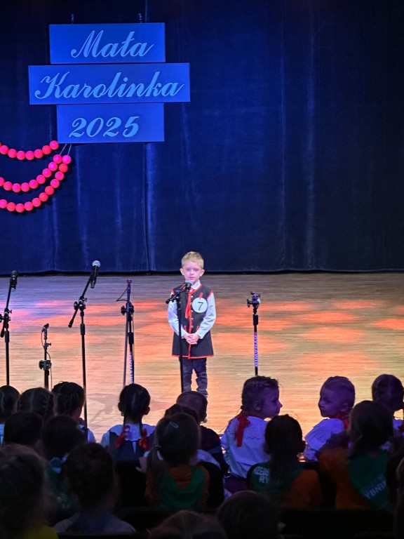 3 grudnia w czasie finału wojewódzkiego konkursu piosenki śląskiej „Mała Karolinka 2025” dzieci z naszego przedszkola pięknie zaprezentowały swoje talenty w solowych występach.